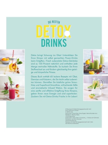 Detox-Drinks sind Power-Drinks! Natürlich, nährstoffreich und frisch zubereitet kurbeln Detox-Getränke den Stoffwechsel an und fördern gleichzeitig die geistige und körperliche Fitness. Dieses Buch enthält 65 leckere Rezepte mit Obst, Gemüse und Kräutern, die Sie leicht selbst zubereiten können. Wissenswerte Extra-Infos zu den Zutaten und eine kundige Einleitung ergänzen die Rezeptauswahl perfekt und erleichtern den Einstieg ins Detoxing.