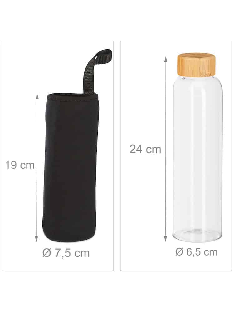 2er Set Glasflaschen: stabiles Borosilikatglas, spülmaschinenfest, -20 bis 150°C, mit Neoprenhüllen